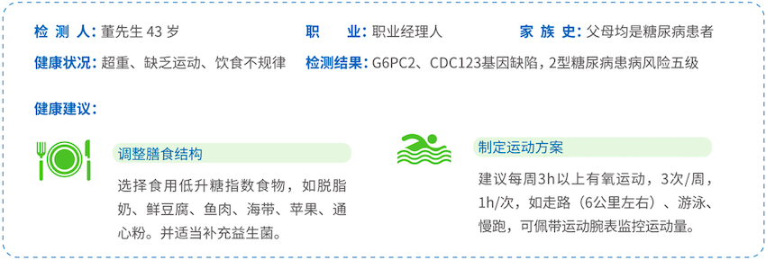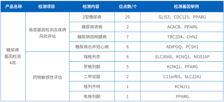 糖尿病基因检测4项顺利获得对2型糖尿病、糖尿病肾病、糖尿病视网膜病、糖尿病合并冠心病四种疾病的易感基因检测,从而对疾病发生风险进行准确评估,在疾病发生之前就进行针对性的预防,有效降低或避免糖尿病及糖尿病并发症的发生。