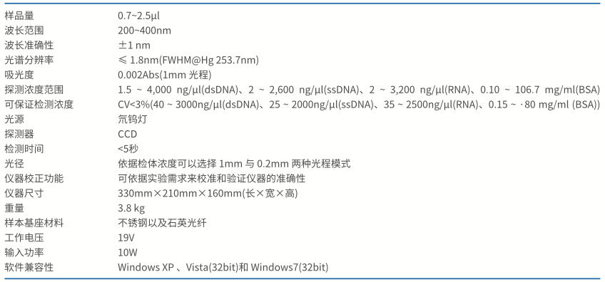 ☆ 在40-3000ng/μl(dsDNA)浓度范围,测量精度CV>3%;